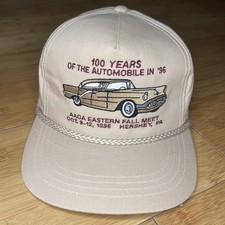 VTG AACA Hershey PA 100 Years Antique Car Show Meet Trucker Strap Hat Cap Khaki