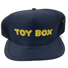 Vintage Toy Box Trucker Hat Cap Snapback Black Mesh Toys Store Puffy 90s Y2K O12