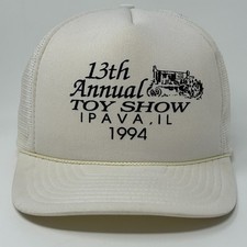 Vintage 90s Toy Show Ipava Illinois Trucker Hat Baseball Cap Mesh Snapback White
