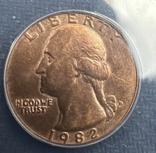 Mint Error 1982-D 25C MISSING Clad Layer OBVERSE 5.58 GRAMS AU55 Rare find