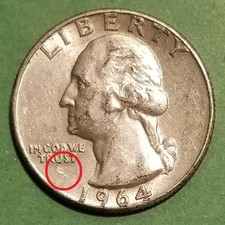 1964 (P) 25c w/Obv Lamination Error Silver Washington Quarter Planchet Flaw