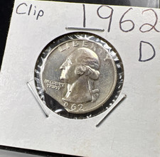 1962 D 25c Washington Silver Quarter Coin Clipped Planchet Error BU UNC