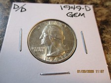 1949-D WASHINGTON QUARTER RPM D OVER D GEM BU HIGH GRADE TOW