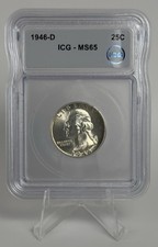 1946-D Washington Quarter ICG MS65 90% Silver DDR D/D Die Cracks Brilliant Unc