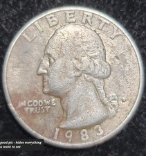 1983 P Washington Quarter Errors IN-No Space In God We Trust Filled A in America