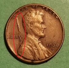 1960 D 1c w/Obv Lamination Errors Lincoln Cent Planchet Flaw Denver Mint