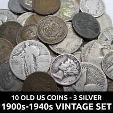 10 Old US Coins Collection - Silver Quarter & Dimes, old nickels and pennies lot