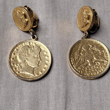 Coin Earrings Barber Quarters| Gold tone Women’s Clip-On Dangle Earrings