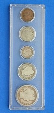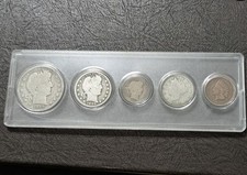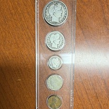 1900 5 Coin Set -Silver Barber Half Dollar, Quarter, Dime, Nickel, Indian Penny