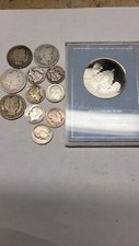 silver coins: Barber quarters, silver dimes, Sterling commemorative