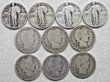 Four (4) Standing Liberty and Six (6) Barber Quarters ; Lot of Ten (10) Coins.