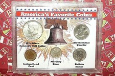 America's Favorite 5 Coins Set Kennedy Half Dollar Mercury Dime Indian Head N1