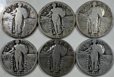 Full Date (6) Standing Liberty Quarters 1925-1930 -$1.50 face- 1.08 oz Silver