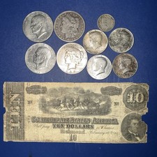 US Silver Coin Lot errors - 1964 Kennedy, 1880 Morgan Silver, conf $10 Note, etc