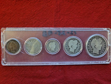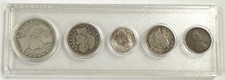 1899 Circulated Year 5 Coin Set Silver Barber half, quarter, dime, V nickel