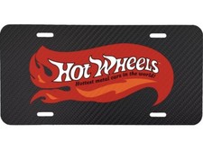 HOT WHEELS LOGO BLACK CARBON FIBER LOOK VEHICLE LICENSE PLATE CAR FRONT TAG AUTO