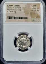 ROMAN EMPIRE Gordian III, AD 238-244 AR Denarius rv Venus stg NGC MS#H493