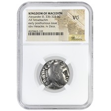 Alexander III, 336-323 BC KINGDOM OF MACEDON AR Tetradrachm, NGC G Rare Coin