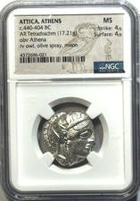 c. 440–404 BC ATHENS AR Tetradrachm– Owl– NGC Ancients MS St: 4/5 Su: 4/5