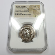 2nd-1st Cent BC NGC ANCIENTS CH VF AR Tetradrachm Athena Owl Silver Coin #55295A