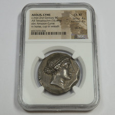 Mid 2nd Century BC Aeolis Cyme NGC ANCIENTS Ch XF Coin - AR Tetradrachm #47786A