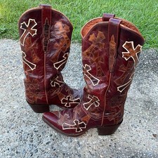 Ladies Southern Cross Boot w/Antique Brown Inlayed Leather Women Size 6.5 M