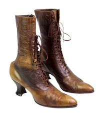 Antique Edwardian Brown Leather Boots High Top Lace-up Victorian High Heel Shoes