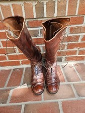 vintage/ antique Ladies Brown Leather Lace up High Top Riding Boots Size 37.5