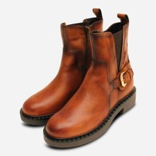 Ladies Antique Tan Bagatt Buckle Chelsea Boots With Zip