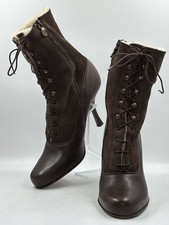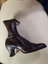 Edwardian Victorian Lace Up Boots Granny Brown Ankle Leather Antique Shoes