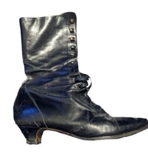 Edwardian Victorian Lace Up Boot Granny Ankle Black Leather Vintage Antique Shoe