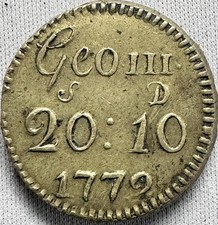 Antique British Brass Token George III Duts Gr. 5:8 20 Shillings 10 Pence 1779