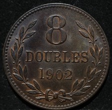 Guernsey 8 Doubles 1902 antique old bronze rare High Grade Foreign World Coin