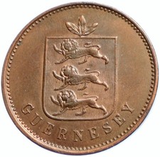 Guernsey 8 Doubles 1864 antique old bronze rare High Grade Foreign World Coin