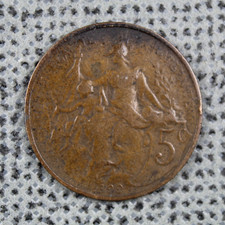 France 5 Centimes 1913 Third Republic Liberty Head Antique Bronze ø 25mm