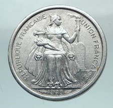 1949 FRENCH OCEANIA / POLYNESIA Island Palms Genuine Antique 1 Franc Coin i80241