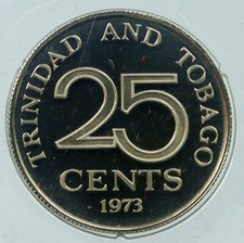 1973 TRINIDAD and TOBAGO One Year Type PROOF Antique 25 Cents Coin i115099