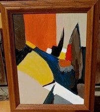 Mid century oil painting paper 1970/80 modern abstract 26+20 inches
