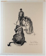 VTG Mid Century Gouache Yale Handsome Dan Bulldog Collegiate Art Signed CONNIE