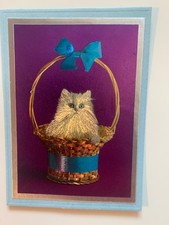 Mid Century Cat Foil Art Metallic Animal Lithograph