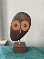 VTG Mid Century OWL WOOD Hand Carved Sculpture MCM Signed M. Prelin