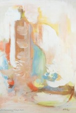Mid Century Abstract Expressionist Painting by M. Lynch Colorful Still Life 1967