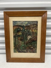 Vintage Framed Watercolor Landscape Signed M. B— | Mid-Century Folk Art Ohio