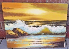 Vintage M Lucas Original Oil Painting Mid Century 12x16 Golden Seascape Surf