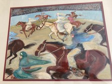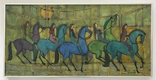 M La Ray Mid Century Modernist Female Horse Rider Equestrian Stable Sun Painting