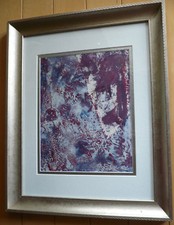 M. SIMON, Mystery Abstraction EXPRESSIONIST ABSTRACT Blue Purple Mid Century Mod