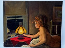 Vintage Painting Saloon Woman Female Model Signed M House Mid Century Women