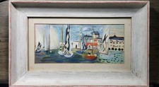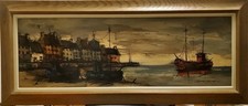 Vintage Mid Century Painting of Harbour Scene by M. Duval