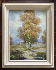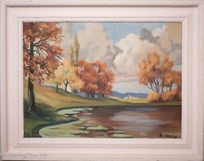 Vintage Mid Century Oil On Canvas; Autumn Kite Flying; Signed M. Rarter(?) 16x21