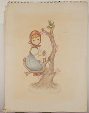 Mid Century Drawing on Paper Young Girl M.B. Douglas 1970
